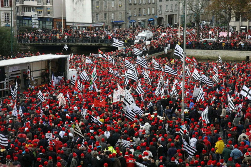 S’il pouvait y avoir des doutes quant à l’appel à manifester le 2 novembre 2013 à Quimper, aujourd’hui les choses sont beaucoup plus lisibles. Le collectif des bonnets rouges est un objet très identifiable. Son moteur est l’institut Locarn, sorte de “think-tank” de patrons bretons, de défenseurs du modèle productiviste de l’agro-business et de régionalistes. Pour eux, comme pour le maire de Carhaix à quelques nuances près, les objectifs sont ultra-libéraux et ultra-conservateurs : il faut liquider les services publics, en finir avec l’héritage de la Révolution française et avec le syndicalisme. Il faut aussi s’affranchir du peu de règles du code du travail : c’est le fameux “droit à l’expérimentation et à la fin du carcan des règles administratives”. Ce mouvement est entièrement au service d’une aile très réactionnaire du libéralisme : transformer la région en zone franche avec comme seul argument l’identité bretonne. Après le 2 novembre, ce collectif hétéroclite appelle de nouveau à manifester. De la soi-disant défense de l’emploi, il ne reste rien.