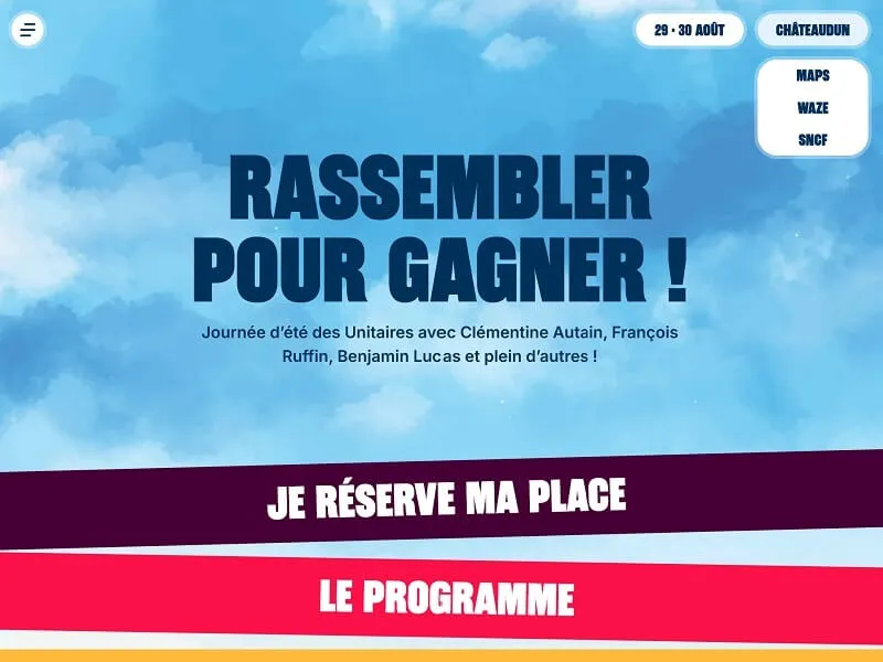 Rassembler pour gagner ! - Journée d'été des Unitaires 800x760 optSamedi 30 août, Génération·s, L’APRES et Debout! organiseront en commun leur première Journée d’été « Rassembler pour gagner – Journée d’été des Unitaires » à Châteaudun, en Eure-et-Loir. Des ateliers, conférences ainsi qu’un meeting marqueront cette journée ouverte à toutes celles et ceux souhaitant construire un projet rassembleur et victorieux pour la gauche.